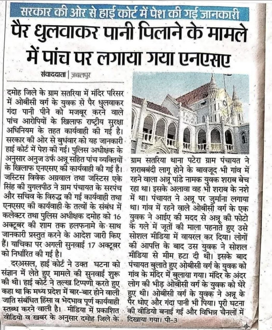 हाई कोर्ट में पेश/ पैर धुलवाकर पानी पिलाने के मामले में पांच पर