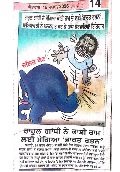 15/03/2026 Ajit/ Send By Charanjit ਰਾਹੁਲ ਗਾਂਧੀ ਨੇ ਮੰਗਿਆ ਕਾਂਸ਼ੀ ਰਾਮ ਦੇ ਲਈ ‘ਭਾਰਤ ਰਤਨ’, ਮਾਇਆਵਤੀ ਨੇ ਪਲਟਵਾਰ ਕਰ ਕੇ ਯਾਦ ਕਰਵਾਇਆ ਇਤਿਹਾਸ