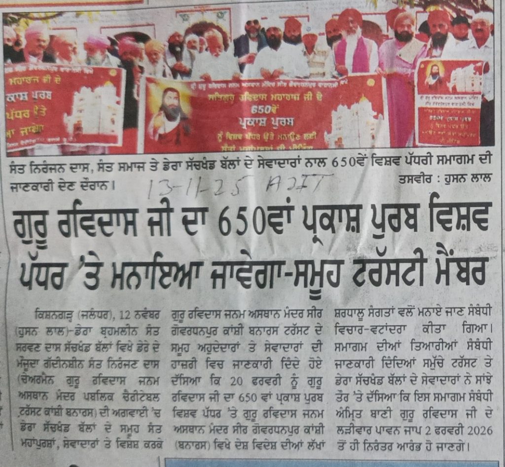 ਗੁਰੂ ਰਵਿਦਾਸ ਜੀ ਦਾ 650ਵਾਂ ਪ੍ਰਕਾਸ਼ ਪੁਰਬ ਵਿਸ਼ਵ ਪੱਧਰ ‘ਤੇ ਮਨਾਇਆ ਜਾਵੇਗਾ-ਸਮੂਹ ਟਰੱਸਟੀ ਮੈਂਬਰ ਗੁਰੂ ਰਵਿਦਾਸ ਜੀ ਦਾ 650ਵਾਂ ਪ੍ਰਕਾਸ਼ ਪੁਰਬ ਵਿਸ਼ਵ ਪੱਧਰ ‘ਤੇ ਮਨਾਇਆ ਜਾਵੇਗਾ-ਸਮੂਹ ਟਰੱਸਟੀ ਮੈਂਬਰ Read More »