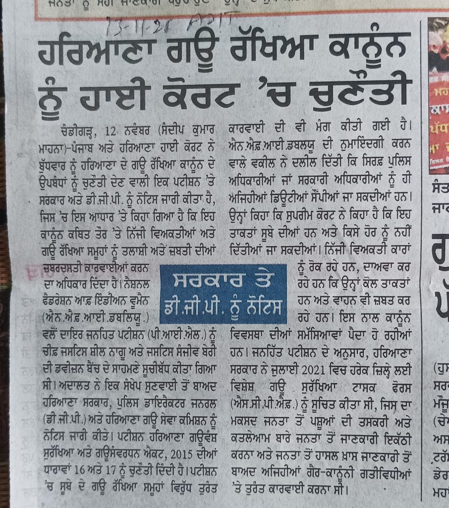 ਹਰਿਆਣਾ ਗਊ ਰੱਖਿਆ ਕਾਨੂੰਨ ਨੂੰ ਹਾਈ ਕੋਰਟ ‘ਚ ਚੁਣੌਤੀ ਹਰਿਆਣਾ ਗਊ ਰੱਖਿਆ ਕਾਨੂੰਨ ਨੂੰ ਹਾਈ ਕੋਰਟ ‘ਚ ਚੁਣੌਤੀ Read More »