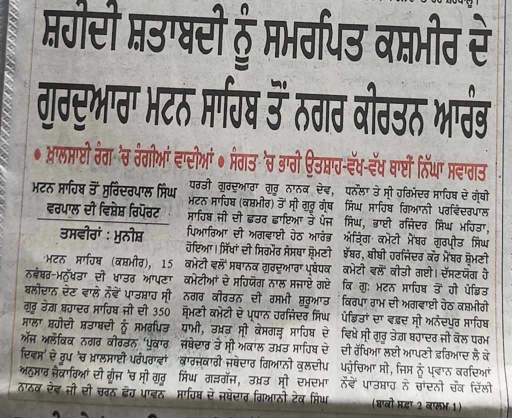 ਗੁਰੂ ਤੇਗ ਬਹਾਦਰ ਜੀ ਸ਼ਹੀਦੀ ਸ਼ਤਾਬਦੀ ਨੂੰ ਸਮਰਪਿਤ ਕਸ਼ਮੀਰ ਦੇ ਗੁਰਦੁਆਰਾ ਮਟਨ ਸਾਹਿਬ ਤੋਂ ਨਗਰ ਕੀਰਤਨ ਆਰੰਭ ਗੁਰੂ ਤੇਗ ਬਹਾਦਰ ਜੀ ਸ਼ਹੀਦੀ ਸ਼ਤਾਬਦੀ ਨੂੰ ਸਮਰਪਿਤ ਕਸ਼ਮੀਰ ਦੇ ਗੁਰਦੁਆਰਾ ਮਟਨ ਸਾਹਿਬ ਤੋਂ ਨਗਰ ਕੀਰਤਨ ਆਰੰਭ Read More »